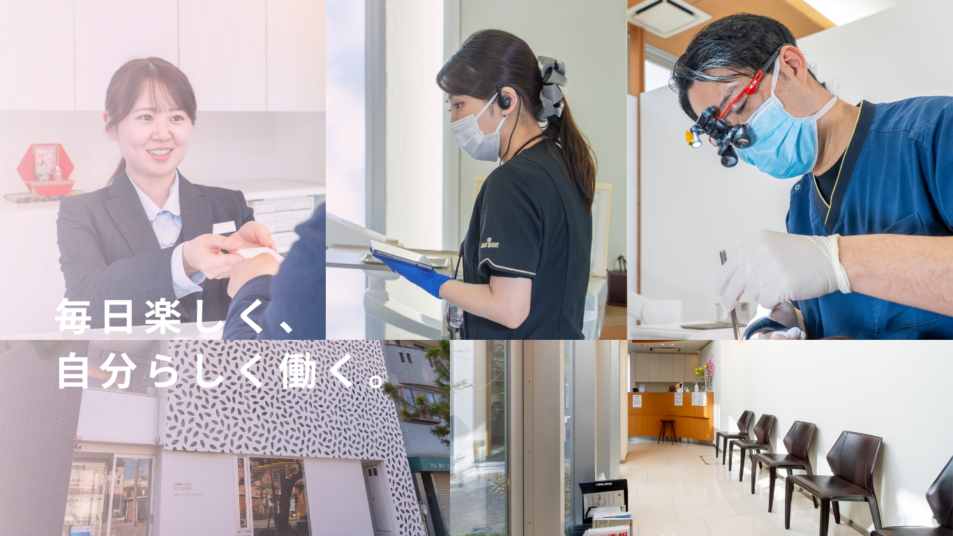 私たちの使命は、患者さんの口腔の健康を回復し、その状態を長く維持できるよう支え続けることです。そのために何より大切にしているのは、「専門職としての成長」です。歯科衛生士という仕事に誇りを持ち、「この仕事を選んでよかった」と心から実感できること。そして、自分の成長を日々感じられる環境をつくることが、医院の責任だと考えています。
